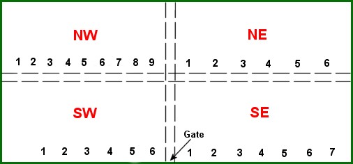 For the purposes of this webpage, the segments are shown as South-West, South-East, North-West and North-East. In diagramatic form, it is laid out as follows: