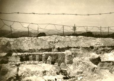 Mr & Mrs Roper also dug trial trenches to the south of the bath house. At a point 28' from the NE corner of the second hot room, a bath-shaped pit was located containing pottery fragments. At 48' and 92', small post-holes were found. At 132', a small area of laid flints was uncovered. Unfortunately, this was the limit of excavations allowed by farmer Jenks. The conclusion was that it was likely the main buildings were probably to be found to the west of of the excavated area. Unfortunately, war clouds gathered and no further excavation has been undertaken on this particular site after 1938 although digs have since been carried out at the summit of Highdown where evidence of occupation through many ages has been found, including some small Roman finds.