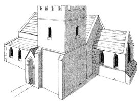 reconstruction of the final church 14th or 15thC (as envisaged by Dr Owen Bedwin's 1974 excavation) |