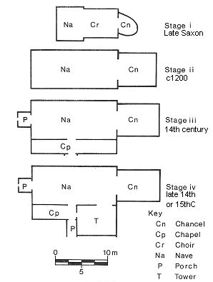 It is believed the church developed in four different stages. The reconstructed ground plans of these are shown below: