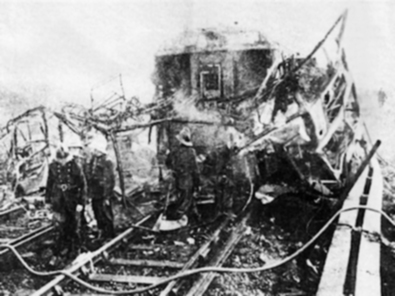The first accident on this stretch of railway appears to have occurred in the Angmering area when the guard on a train hit his head on a bridge - he appears to have been checking luggage on the roof of the train which was carried in a similar way to stage-coaches. Over a hundred years elapsed before the next serious accident in the Angmering area. This was on 22 September 1965 when the 8.47am Brighton to Portsmouth train hit a Southdown double decker bus at 9.31am in thick fog at the Roundstone crossing (see photo below). The bus and the front end of the train were burnt out and three women on the bus were killed and another eight injured. The official report dated 20 December 1965 largely blamed crossing keeper, C A Coleman, for an error in opening the wheel operated gates to road traffic as he had made an incorrect assumption that the train had already passed the crossing. However, the report also stated that the signalling equipment was obsolete and the accident would not have happened if the latest automatic crossing barriers had been installed.