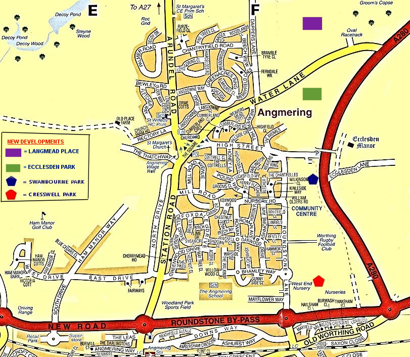 New roads to the east of Roundstone Lane are not currently shown on this map. In 2016 a large development known as Swanbourne Park (off the northern part of Roundstone Lane) was in an advance state of construction with many houses occupied. In the southern part of Roundstone Lane, construction of Cresswell Park commenced in the summer of 2016.