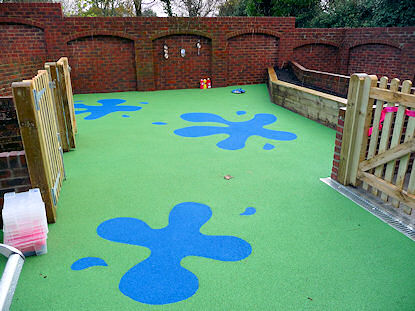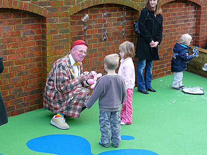 | The colourful rubberised play area | Clown entertains with balloon modelling | |