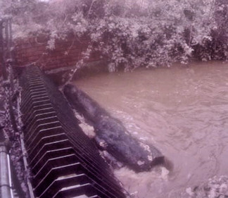 Alerted as a result of monitoring of the webcam, the Environment Agency rushed to the culvert and had removed the large log by 3.55pm (see photo below) and, within 5 minutes, the water level at the culvert entrance had fallen by about 200mm.