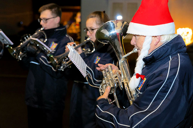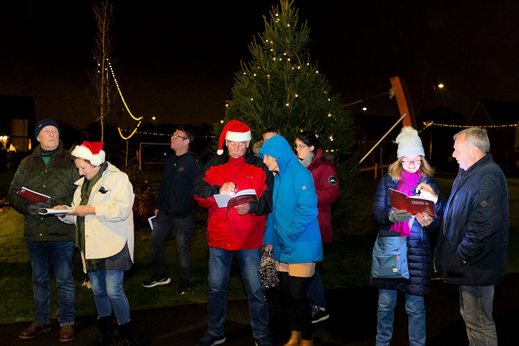 A brass brand from the Salvation Army provided live music for carolling, around an eleven-foot-tall Christmas tree gifted by David Wilson Homes for residents to enjoy, complete with a further £250 donation for decorations and refreshments.