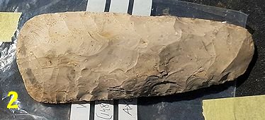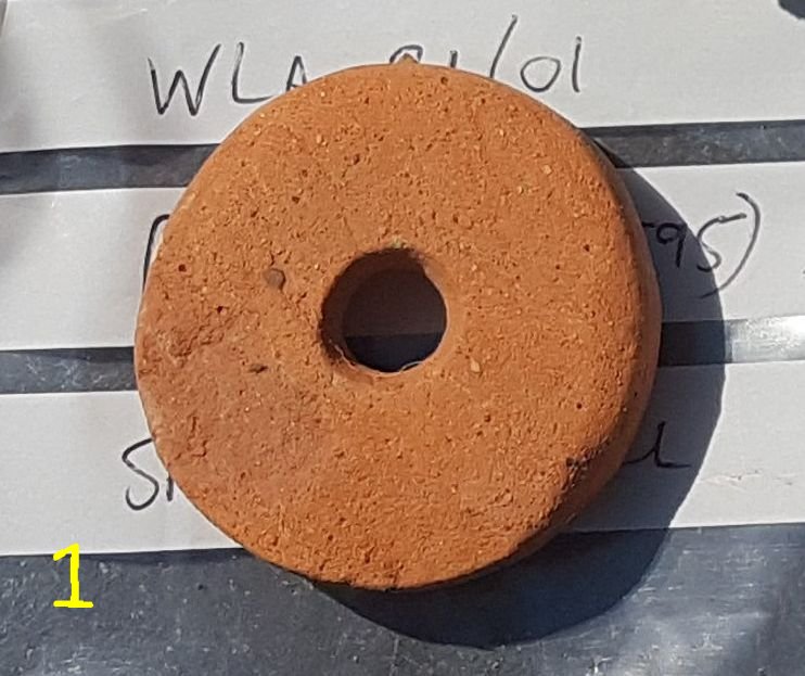 Among the finds discovered on site were a Neolithic flint axe which was buried in a late-Iron Age or early/Roman ditch where it may have been placed deliberately. Also found in a ditch was a Roman bead fragment made of blue-green glass or glazed ceramic pottery. Other finds included a Roman coin, a fragment of glass from perhaps a small Roman vase/vessel, a metal linchpin or part of a Roman key, part of a stone quern, a spindle whorl, fragments of decorated Samian pottery, and what might have been a whetstone.
