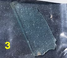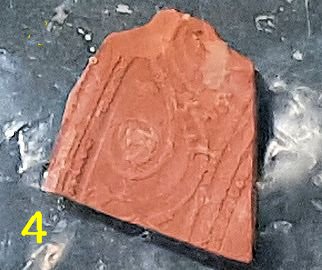 Photos : (1) spindle whorl, (2) axe head, (3) Roman glass, (4) decorated Samian pottery