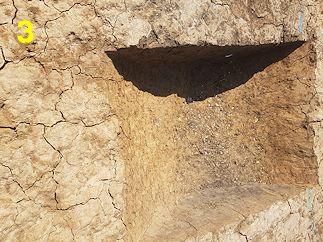 Photos : (1) pond, (2) cremation burials, (3) pit with burnt flints