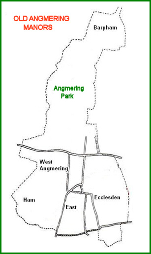 Sources are very vague about Angmering Park, including the boundary description of West Angmering. It was later attached to Michelgrove House, in a part of Patching that was originally an outlier of Clapham. But evidently it was not a part of Clapham. It can only be affirmed that the park was divided between Barpham, the Angmering manors, Rustington, and Patching.
