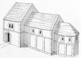 reconstruction of the final church 14th or 15thC (as envisaged by Dr Owen Bedwin's 1974 excavation) |