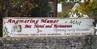 Two years ago, the Chapman Group started the planning permission process to convert Syon House in the High Street to a country house hotel. Despite objections from a number of people in the village, and particularly residents of the High Street, planning permission was eventually granted. Conversion work on the former Elizabethan rectory has been going on for some months and the building will open as Angmering Manor (bar, hotel and restaurant) next month. The banner adjoining the road announces the opening: