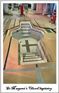 In the meantime, the work inside the church is going ahead as planned, the ‘second fixing’ will be starting in about two weeks’ time and the tiling to the bapistry (see right) is finished. The bapistry is ready for the cover to be fitted.