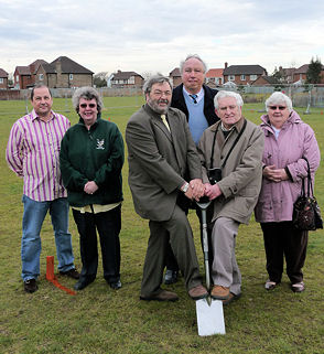 The building of Angmering's new Community Centre at Bramley Green officially started today when Chairman of Angmering Parish Council, Councillor Nigel Nunn and former Council Chairman John King, cut the first turf at a small ceremony this afternoon attended by parish councillors and members of the Angmering Community Centre Association.