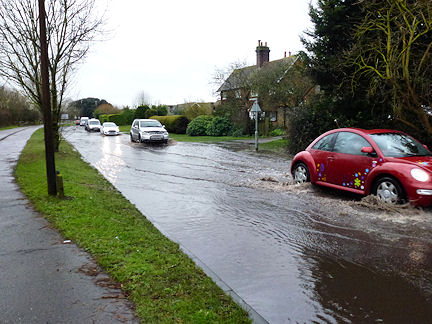 Parts of Angmering were flooding today (Friday) as the rain continued. In Station Road, renowned for flooding, the road was only only passable in one direction as can be seen from the photos below taken just after 4.00pm this afternoon
