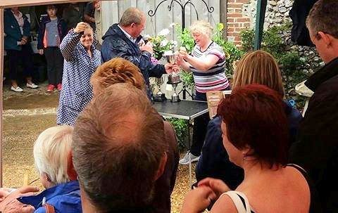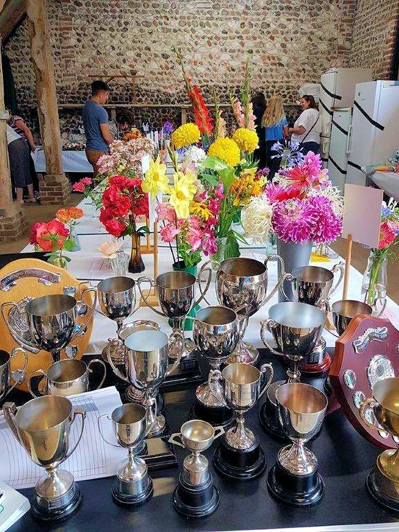 Bridget Kearns from the show organising committee said: "Whilst our visitor numbers were slightly down in the afternoon, it was lovely to see familiar and new faces enjoying the show in the barn and having tea and scones in the garden sheltering under the apple tree! Mr Peter Blake our generous host for the day, presented the cups and trophies as usual and we were delighted that our oldest exhibitor, Mr Stanley Edson (age 97) won the Holmes trophy for most points in the Roses classes, a fine return to form after being out of the awards for a couple of years. Stanley is an inspiration to us all and shows that gardening is good for the body and the soul!"