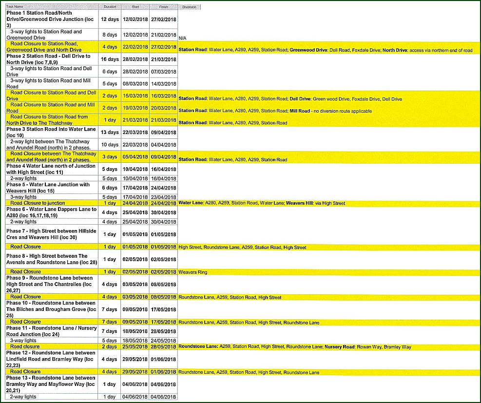 A schedule of the works plus maps can be viewed here. A PDF file (13MB) will be opened. Notwithstanding that, below is Schedule without the maps: