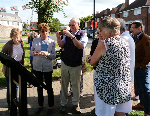 Angmering villagers gathered on the Green on Monday morning (10 September) for the unveiling of a new Angmering Heritage map which has been erected there. The map, an initiative of Angmering in Bloom (AIB), has been some three years in the making and illustrates most of the more historic buildings in the village with a brief description of each.