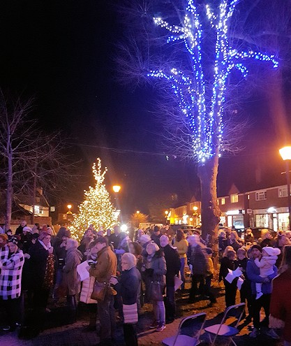 On a cold but dry evening, nearly 200 people turned out yesterday (Friday) to participate in Angmering Parish Council's ceremony of turning on the Christmas lights in The Square, tying memory tags to the wonderfully lit Christmas tree, and singing carols and listening to poems. The event was conducted by the chairman of the Council, Cllr John Oldfield.