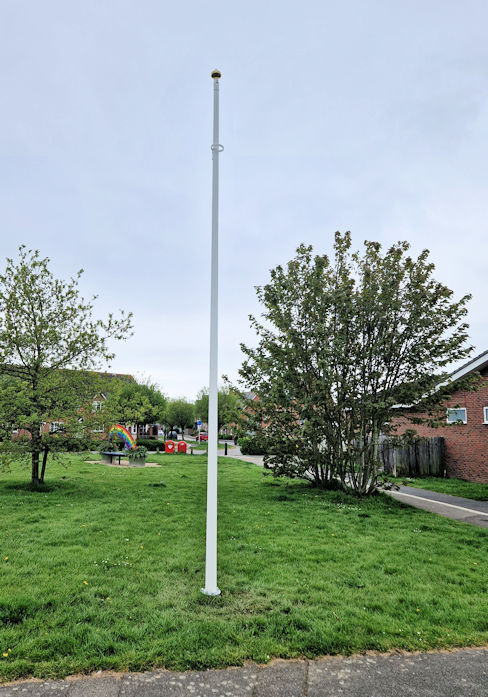 The inauurating event will take place on Saturday 6th May, Coronation Day, commencing at 9.30am when the Union Flag will be raised aloft. The broad expanse of grass enables unlimited residents to gather and the inauguration will be kept brief to ensure everybody can be back at home in ample time to view the official activities at Westminster Abbey.