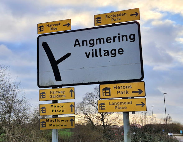 This photo has be 'doctored', by the addition of two valid developments which had been missed off the sign, which graphically illustrates the state of development in Angmering. The majority of residents are angry about the contempt being shown to them by developers and by Arun District Council decisions. Enough is enough!